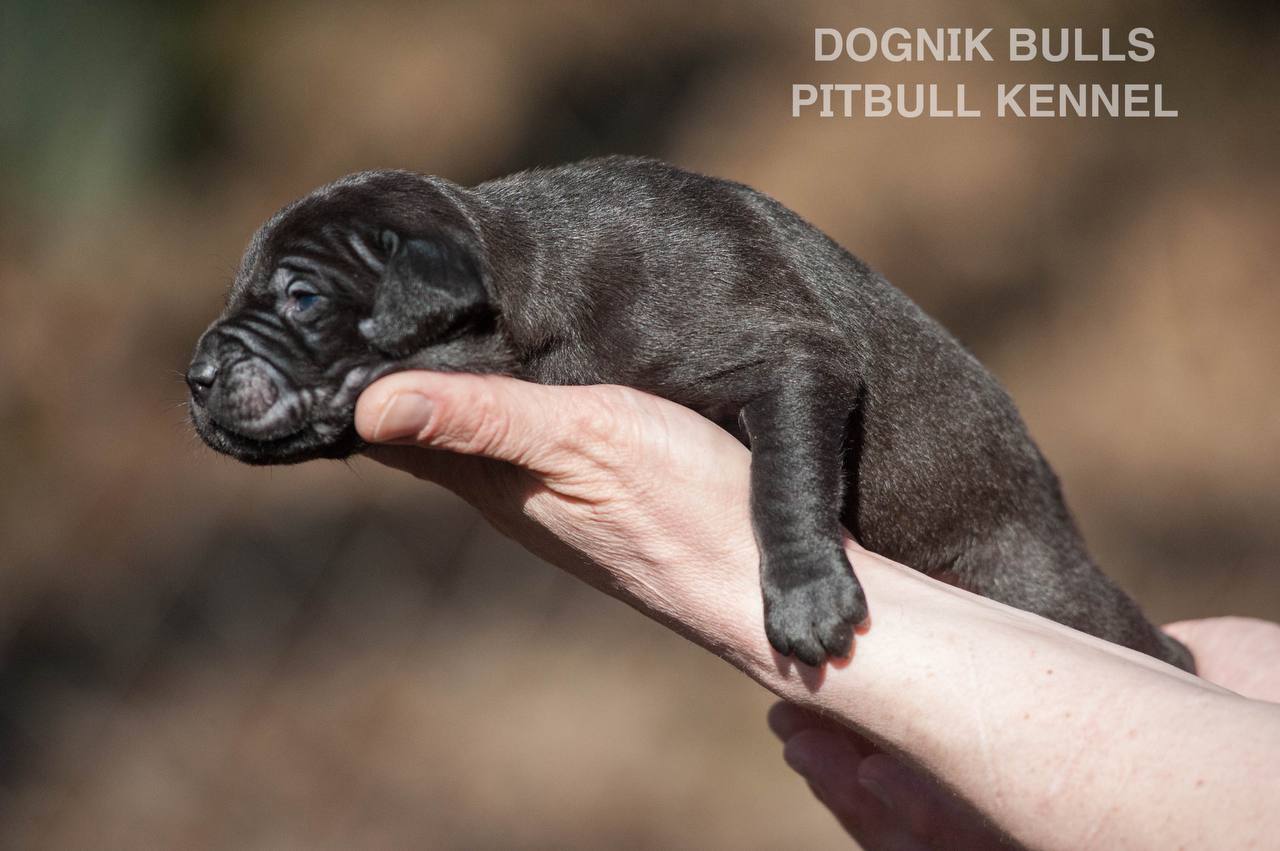 American pitbull terrier puppies from European kennel Dognik Bulls. Colours: black pitbull terrier, brindle pitbull terrier. Breeding american pitbull terriers: Dognik Bulls Godena x Dognik Bulls Gangstas Paradise